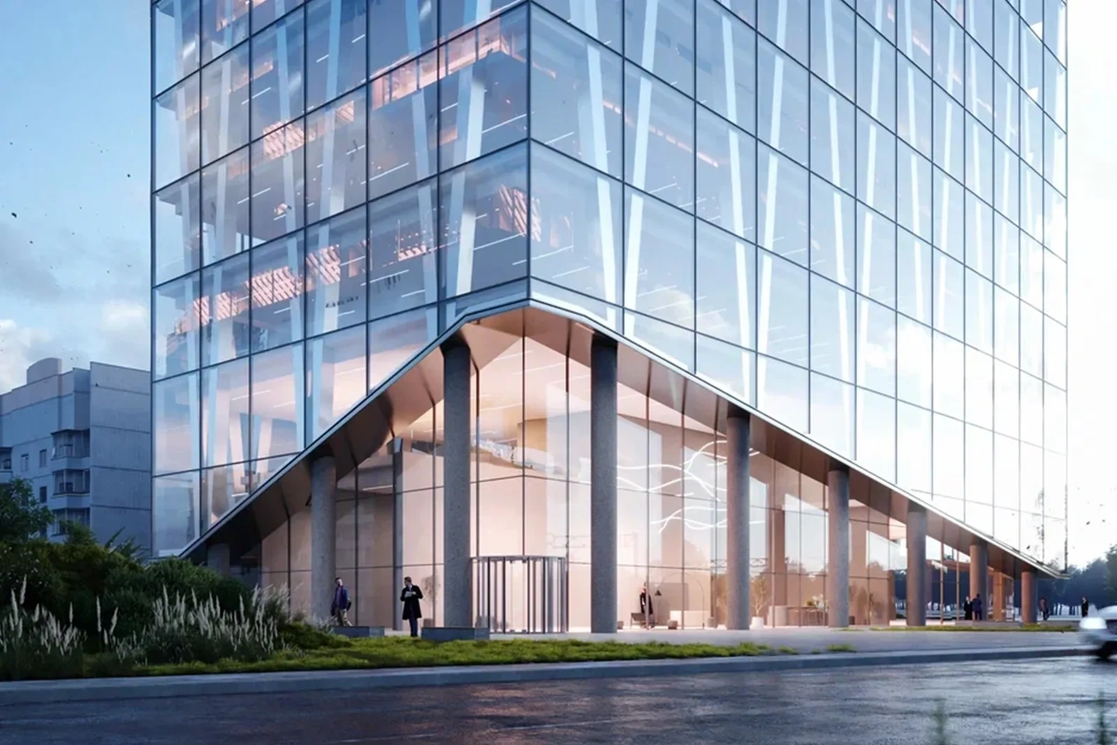 Фасады бизнес-центра выполнены со стеклянной облицовкой. Витражи с зеркальным напылением способствуют повышению энергоэффективности здания, снижая теплопотери в зимний период и уменьшая затраты на кондиционирование в летний. Для удобства арендаторов предусмотрены комфортные условия: в здании установлены скоростные лифты с низким уровнем шума, а также обеспечена круглосуточная охрана и система видеонаблюдения.