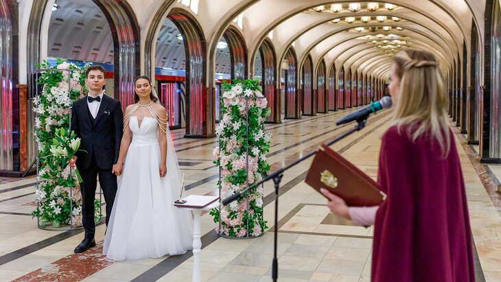 «Такой формат требует особой подготовки: на несколько часов пространство станции переоборудуют, чтобы создать уникальную площадку для регистрации брака. Эта работа обычно остаётся незаметной для пассажиров, но именно она позволяет провести церемонию в необычной атмосфере», — отметил заместитель мэра по вопросам транспорта и промышленности Максим Ликсутов.